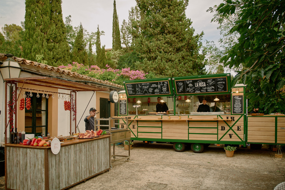 El Vagón de La Rosa, dos food trucks con personalidad diseñados específicamente para fiestas, festivales y eventos de cualquier índole y tamaño. Tienen una dimensión de 6 metros de largo con terraza desplegable y cocina profesional totalmente equipada. El Vagón de La Rosa destaca por su estética cuidada y personal, que aporta valor al evento. Tienen un diseño llamativo que rompe con la estética convencional de los food trucks del mercado. No es sólo gastronomía, sino un elemento decorativo y de entretenimiento que suma al ambiente del evento.